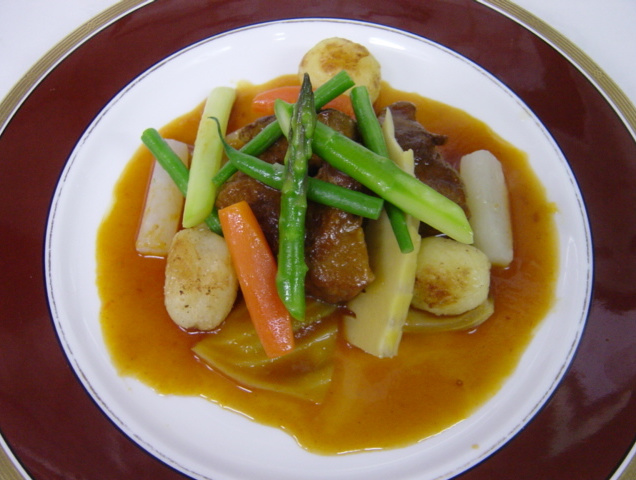 牛サーロイングリエ・マルシャンドヴァンバター / 仔羊のトマト煮